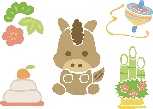 午年のイラストセット 年賀状におすすめのかわいい馬とお正月素材 Stock ベクターをダウンロードし、Adobe Stock で類似のベクターを探しましょう。